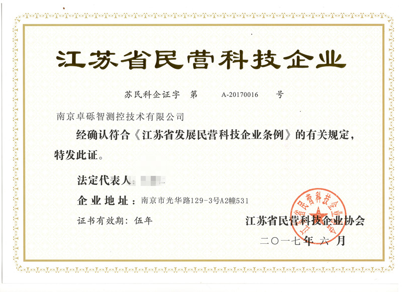 根據《江蘇省發展民營科技企業條例》的規定,經企業申報,上級主管部門推薦、審核,公司於近日獲得首批“江蘇省民營科技企業”資質。