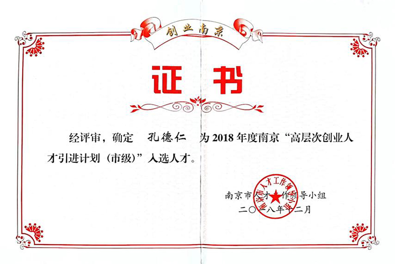 2018年法人獲得《高層次創業人才引進計劃》